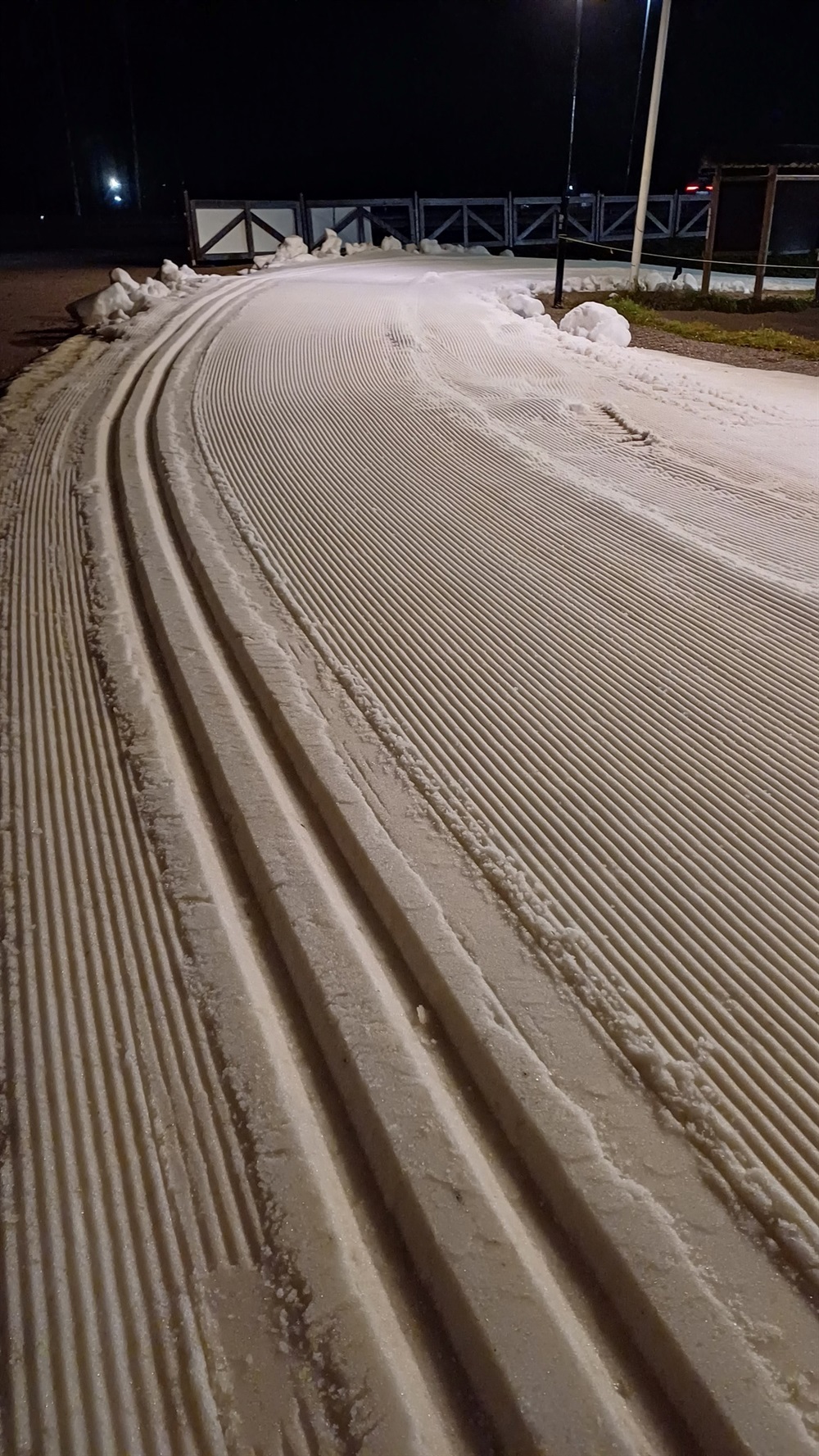 Det har tagit hårt på snön den senaste veckan. Men Tommy har jobbat mycket bra med att flytta snö och fylla på med mer snö från bandy-arenan.